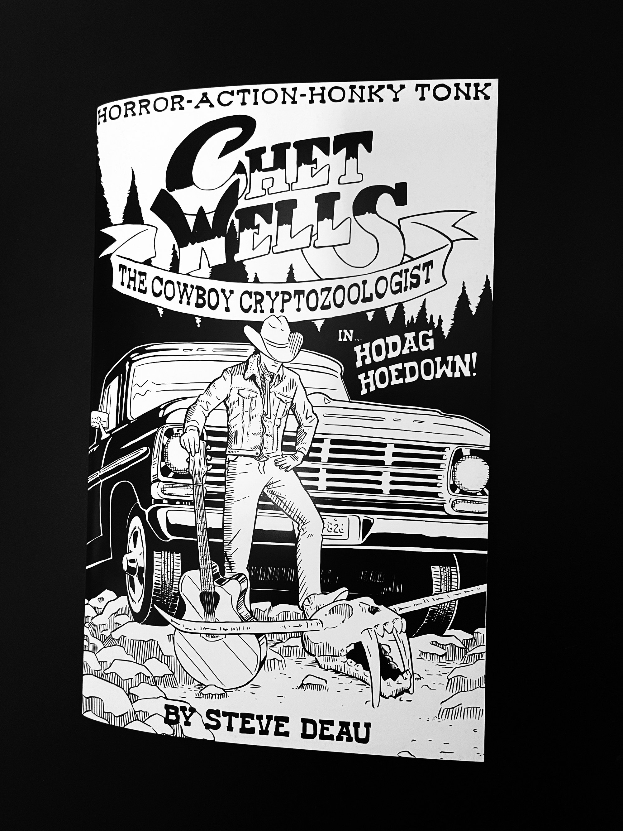 Chet Wells the Cowboy Cryptozoologist is back for another adventure in HODAG HOEDOWN! Among Rumors of a fabled beast, loggers are disappearing up on the ridge. There's only one man for the job. 28 pages of Honky Tonk Horror Action in stunning black and white.